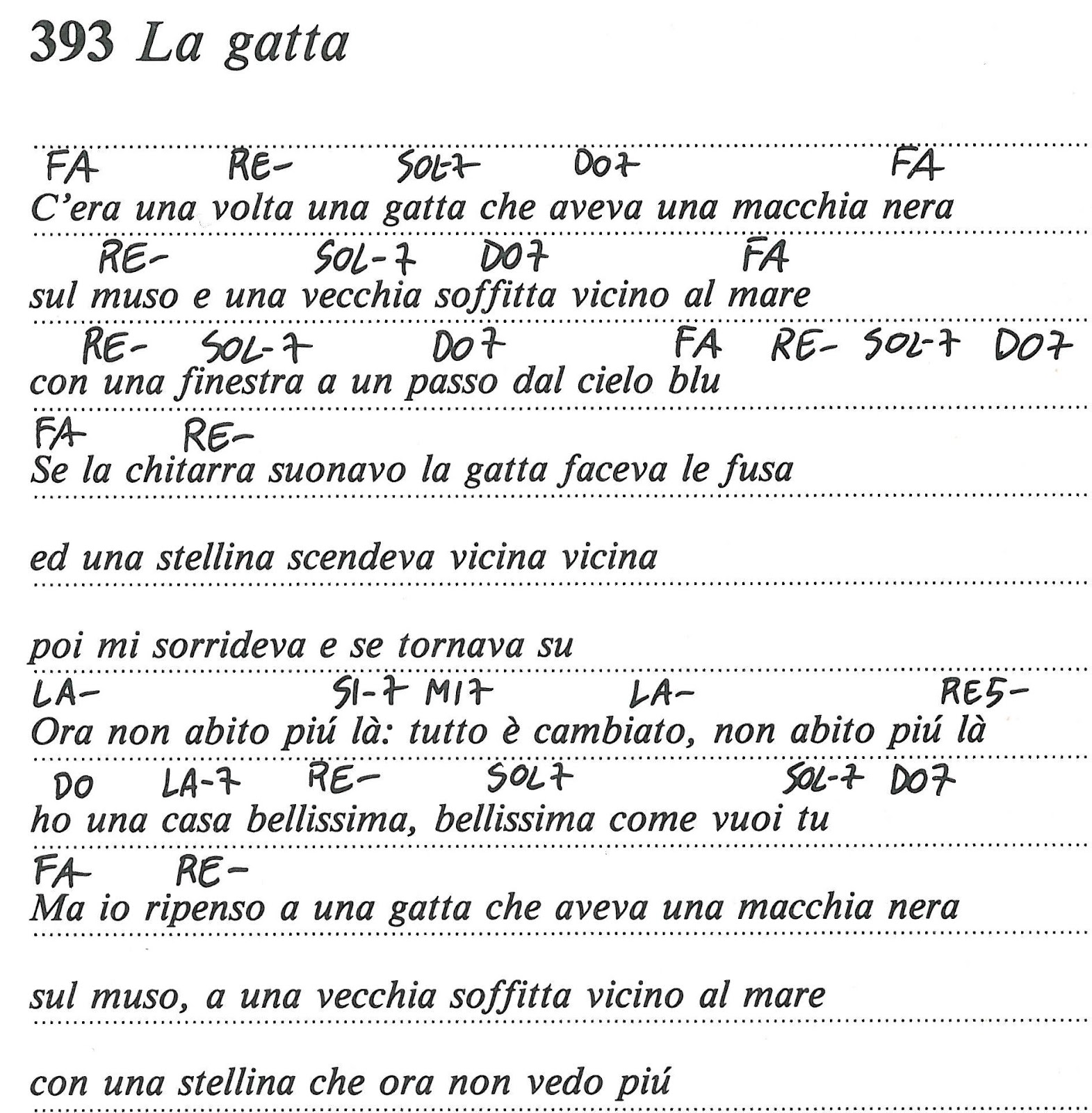 WebC'era una volta Una gatta Che aveva una machia nera In suo muso A una vecchia soffita Vicino al mare Con´una finestra A un passo dal cielo blue Se la chitarra suonavo La gatta. WebC'era una volta Una gatta Che aveva una machia nera In suo muso A una vecchia soffita Vicino al mare Con´una finestra A un passo dal cielo blue Se la chitarra suonavo La gatta. WebC’era una volta una gatta che aveva una macchia nera sul muso e una vecchia soffitta vicino al mare con una finestra a un passo dal cielo blu. Se la chitarra suonavo la gatta.